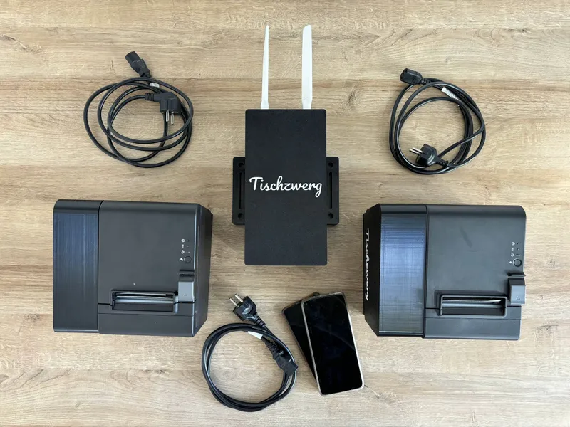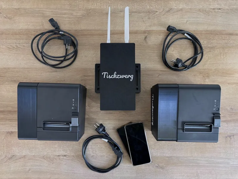 Server, Drucker, dein Smartphone und ein paar Steckdosen - das Bestellsystem für Vereinsfeste in wenigen Minuten aufgebaut.